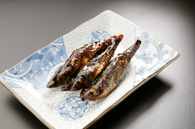 この魚は鮮度落ちが早いため、魚場でしか味わえません。昔ながらの製法で炊き上げた、昔ながらの甘露煮です。